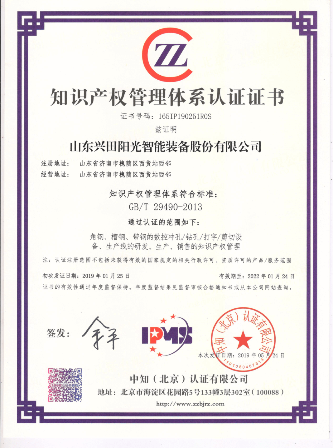 知识产权管理体系认证证书