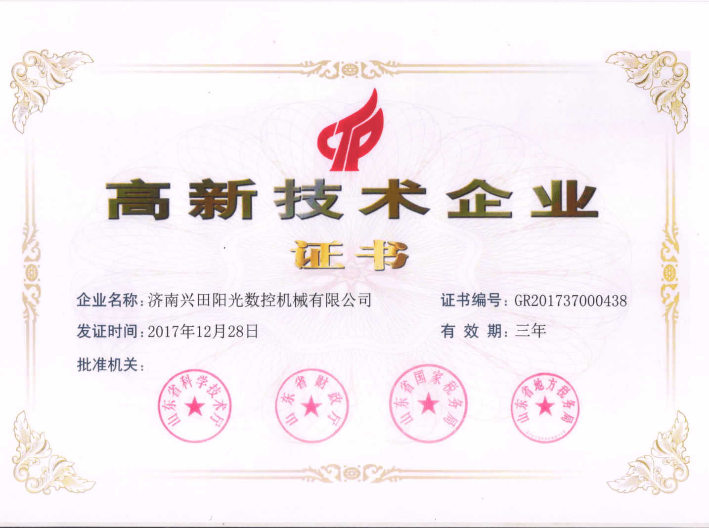 高新技术企业证书2017年度新认定