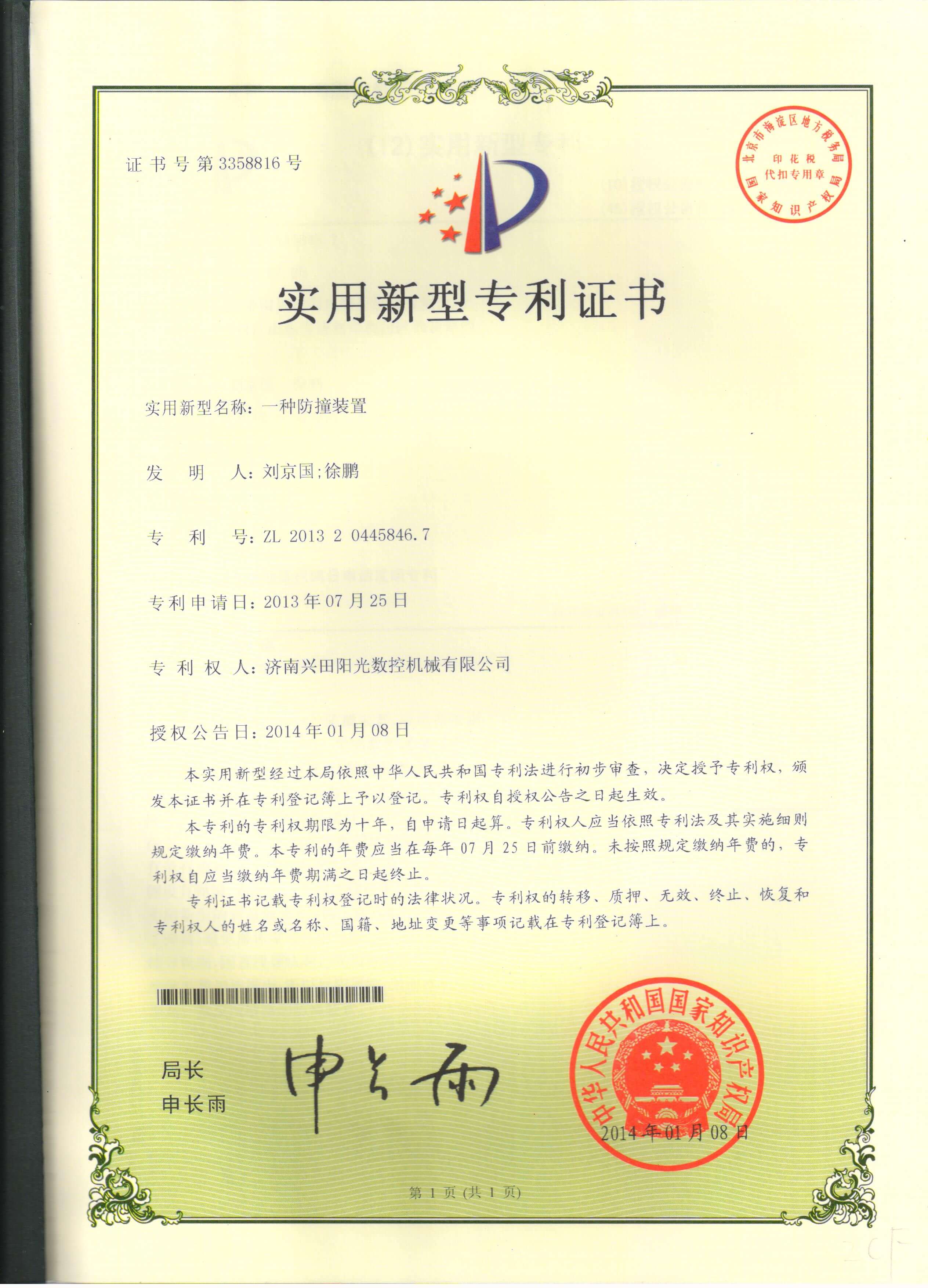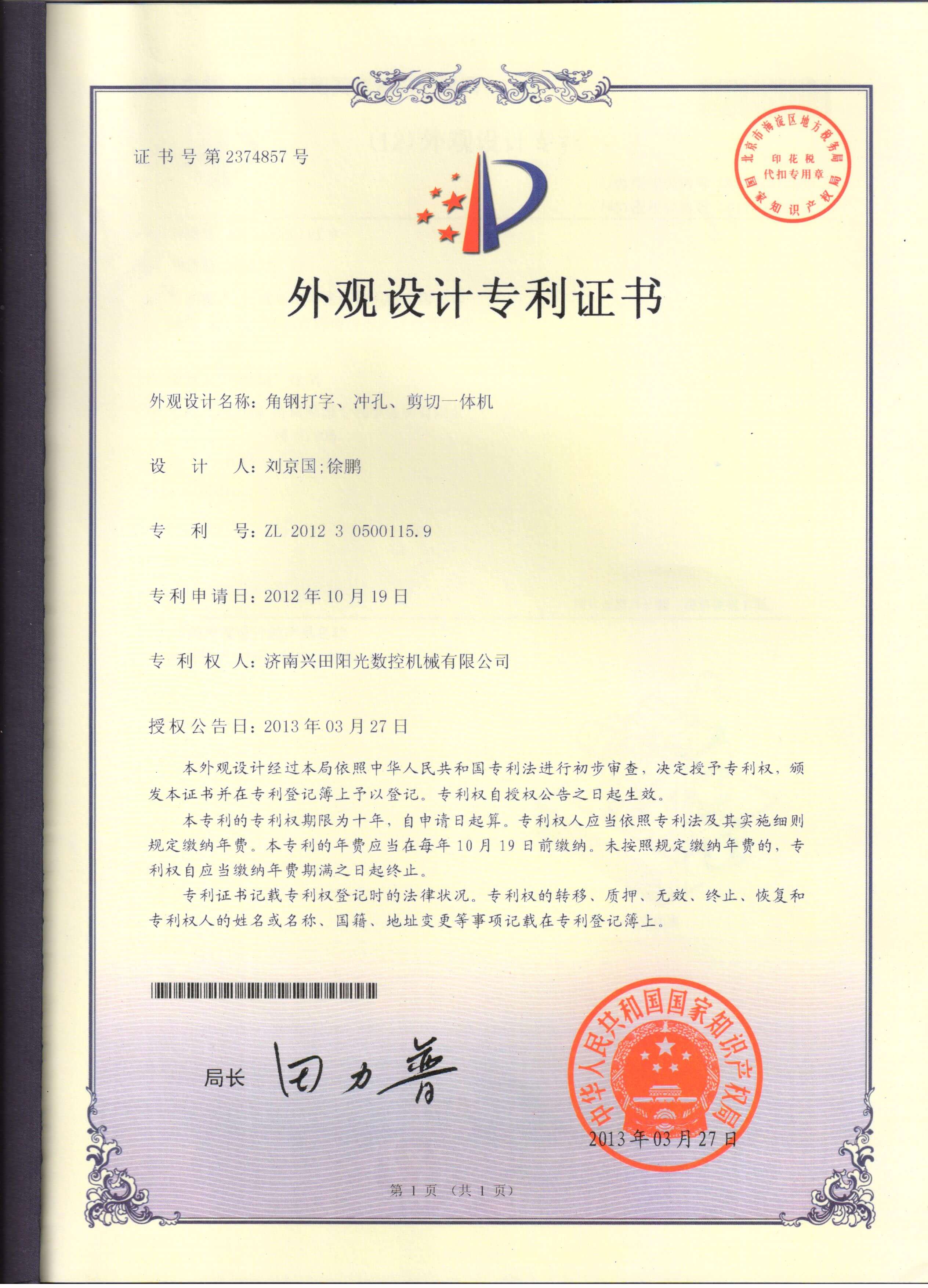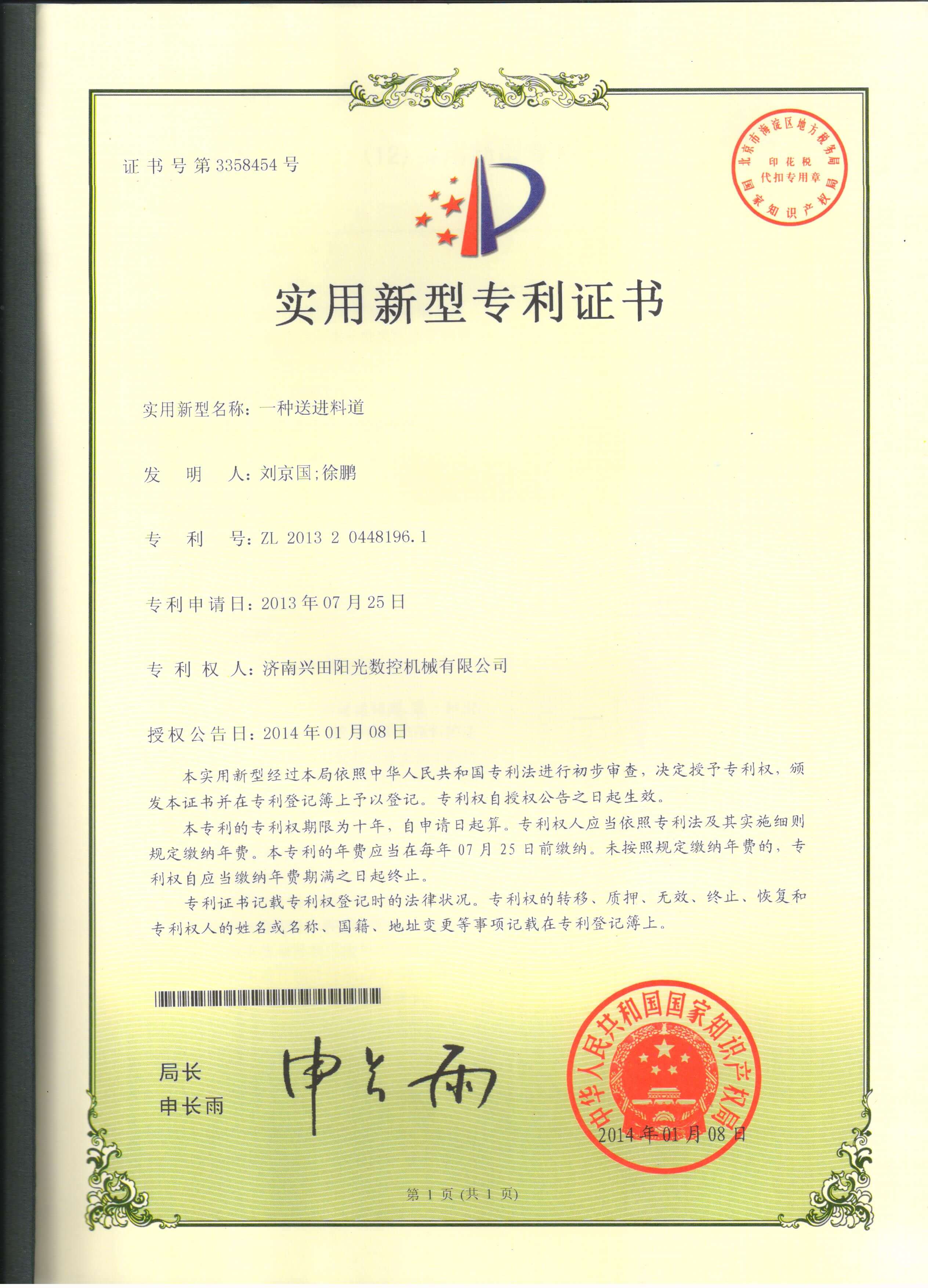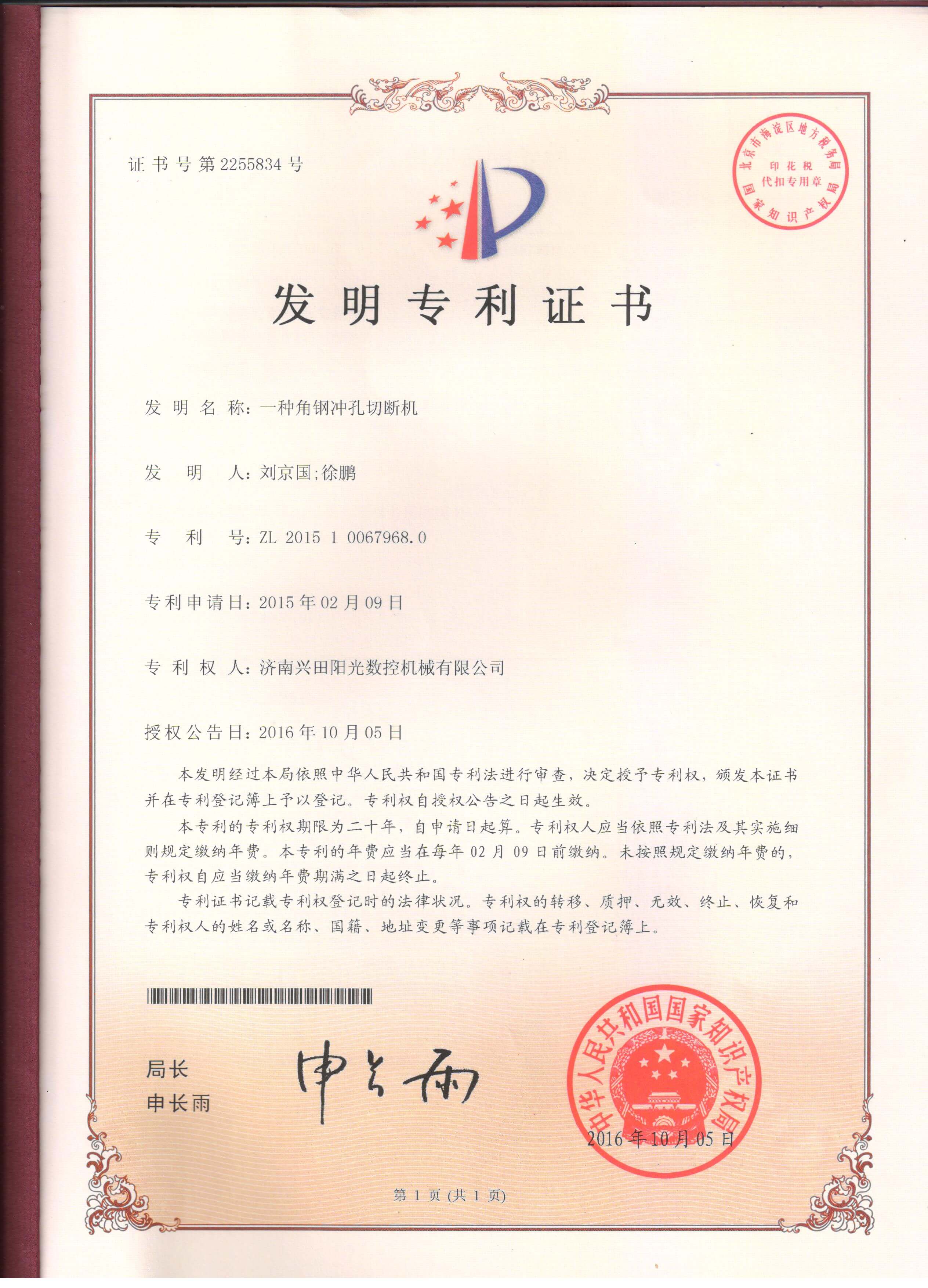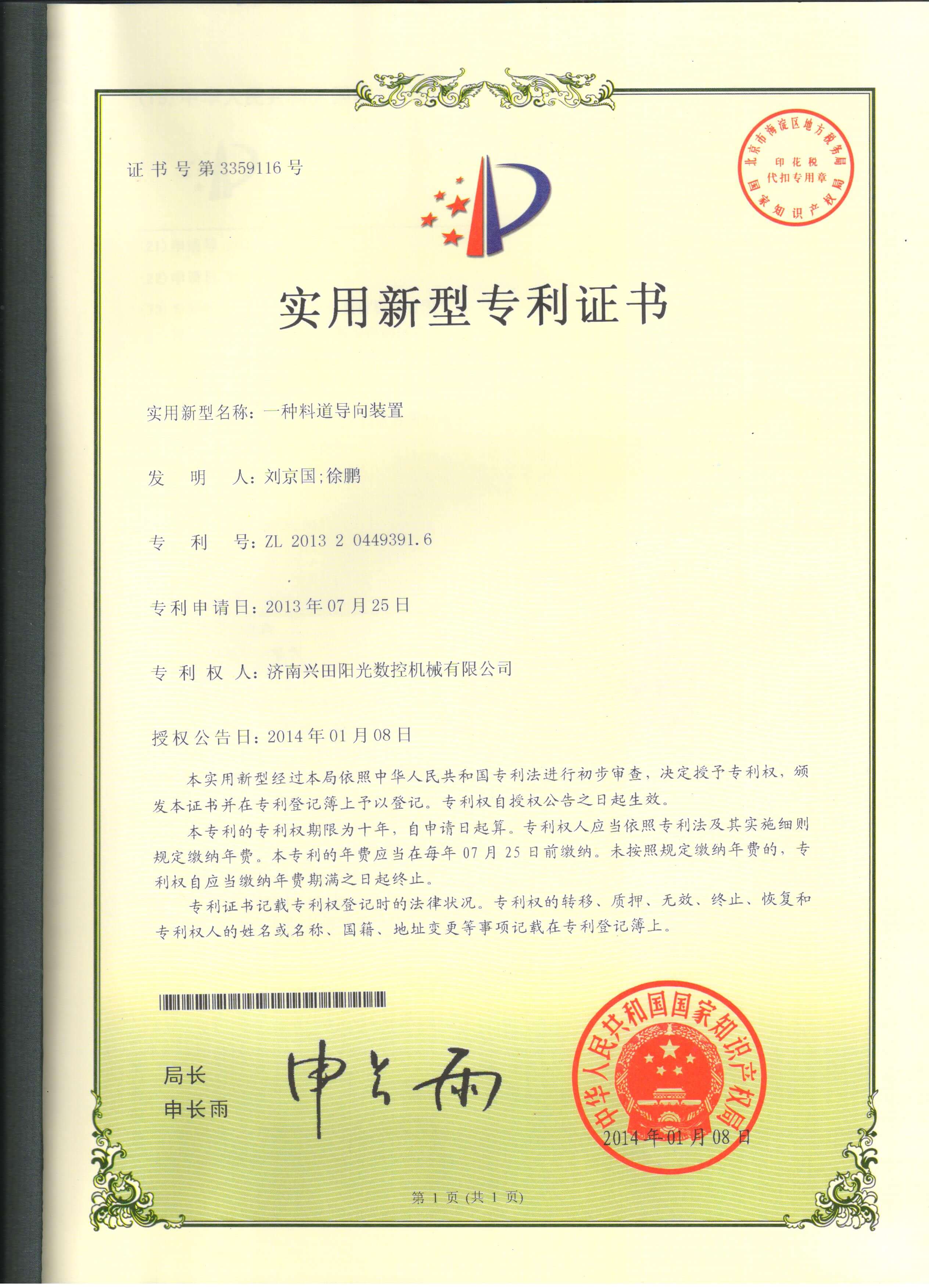 • 专利证书